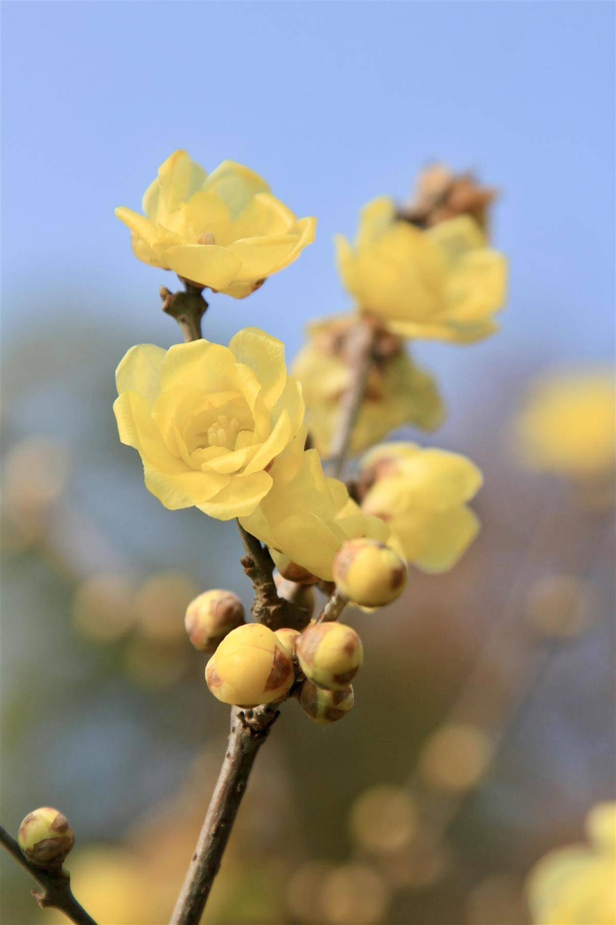 欣赏蜡梅,贵在眼观、鼻嗅、心悟。驻足花前,先观其形:金黄花瓣或如蜡笺薄透,或似蜜蜡凝脂;再赏其色,鹅黄、金黄,每一种色调都藏着冬日独有的温柔。继而俯身嗅香,清冽不浓烈,醇正不甜腻,深吸一口,便驱散了冬日的沉闷,换来身心舒畅。最后静心感悟,这凌霜傲雪的蜡梅,不与百花争春,独在寒冬绽放,是坚韧风骨的象征,赏梅亦是赏一份刻在骨子里的东方雅致。